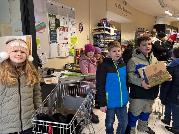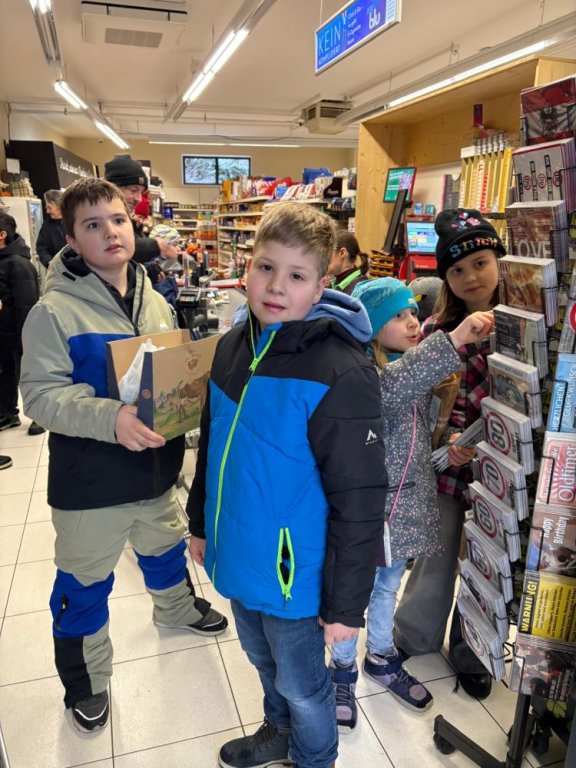 Walk and Talk macht hungrig! Und so wurde beim örtlichen Nahversorger ein Zwischenstopp für eine kleine Jause eingelegt. Dabei wurde gleich der Umgang mit Geld geübt. In der Schule ließen die Kinder es sich dann schmecken.