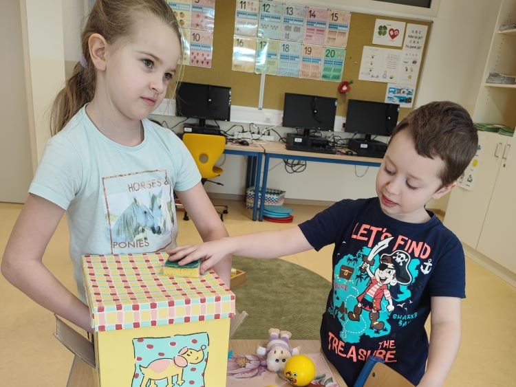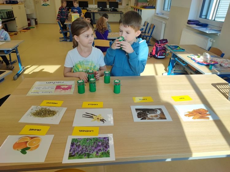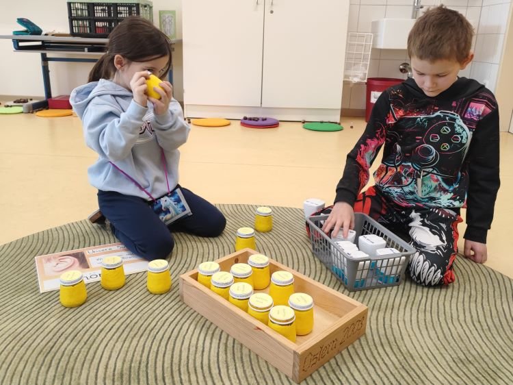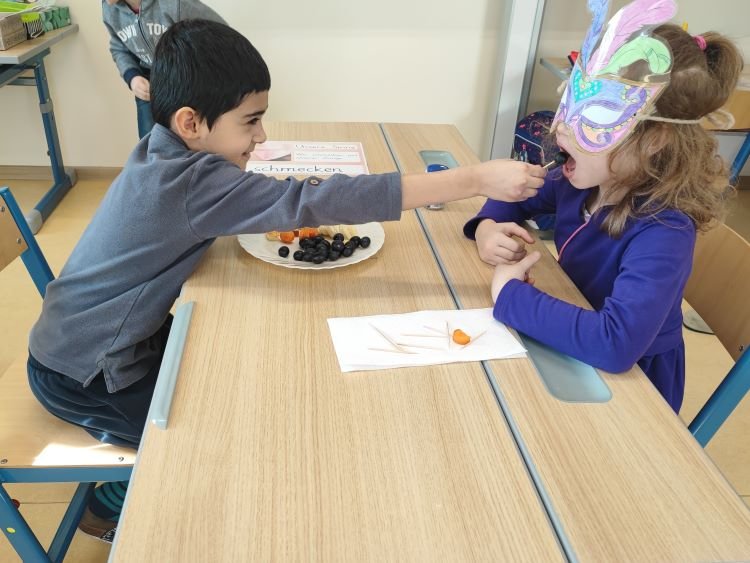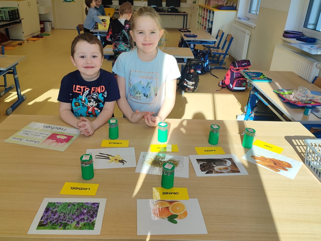 Im Zuge des Projekts „Wir testen unsere Sinne“ konnten die Kinder der 1. Klasse an 5 Stationen ihre Sinne auf die Probe stellen. Neben einem Hörmemory, einem Riechzuordnungsspiel und einer Verkostungsstation wurden auch 2 Stationen zum Sehen und Fühlen angeboten.
