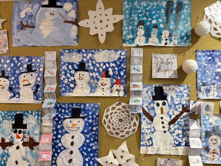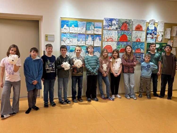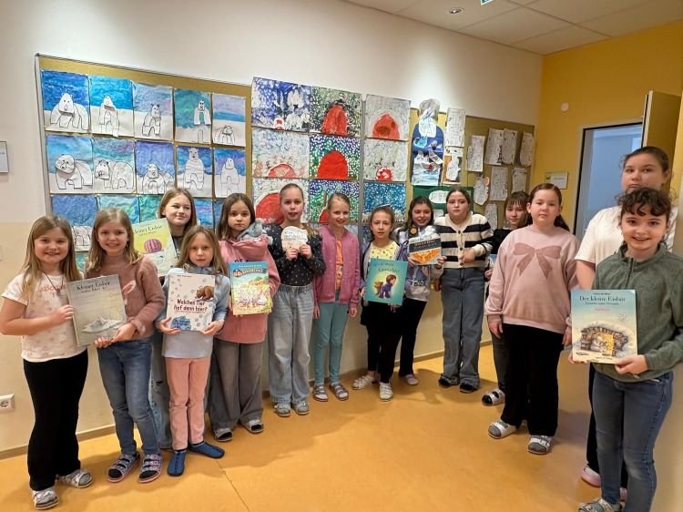 Ausgehend vom Buch „der kleine Eisbär Lars“ entdeckten die Kinder der 1., 3., und 4. Klasse fächerübergreifend den Winter auf unterschiedliche Arten. Bücher wurden gelesen, Bilder gezeichnet und Eisbären gebastelt.